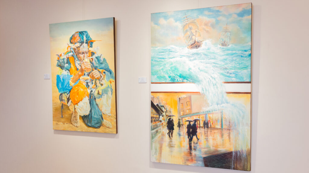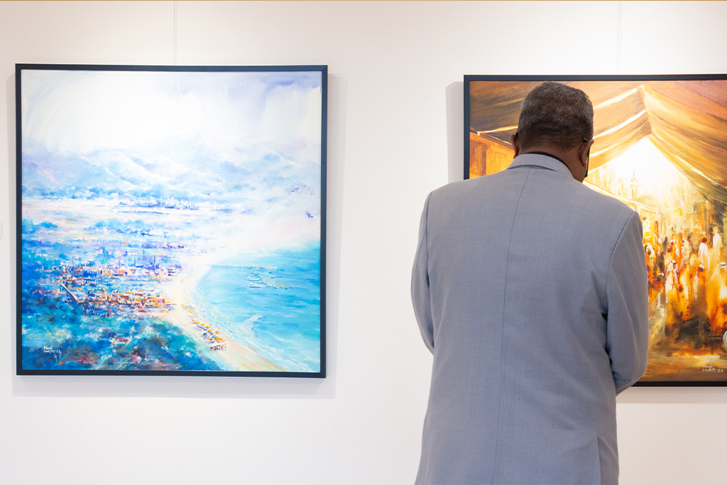 تستعرض لوحات الفنان السوداني ناجي لعوتة جمال الاختلاف والحوار ما بين الثقافات والأحاسيس في مشاهد الحياة.